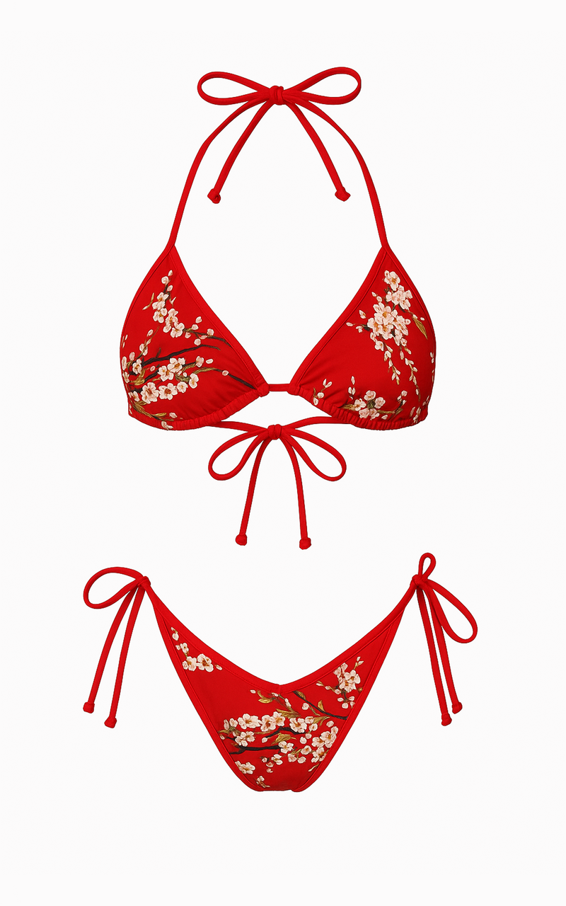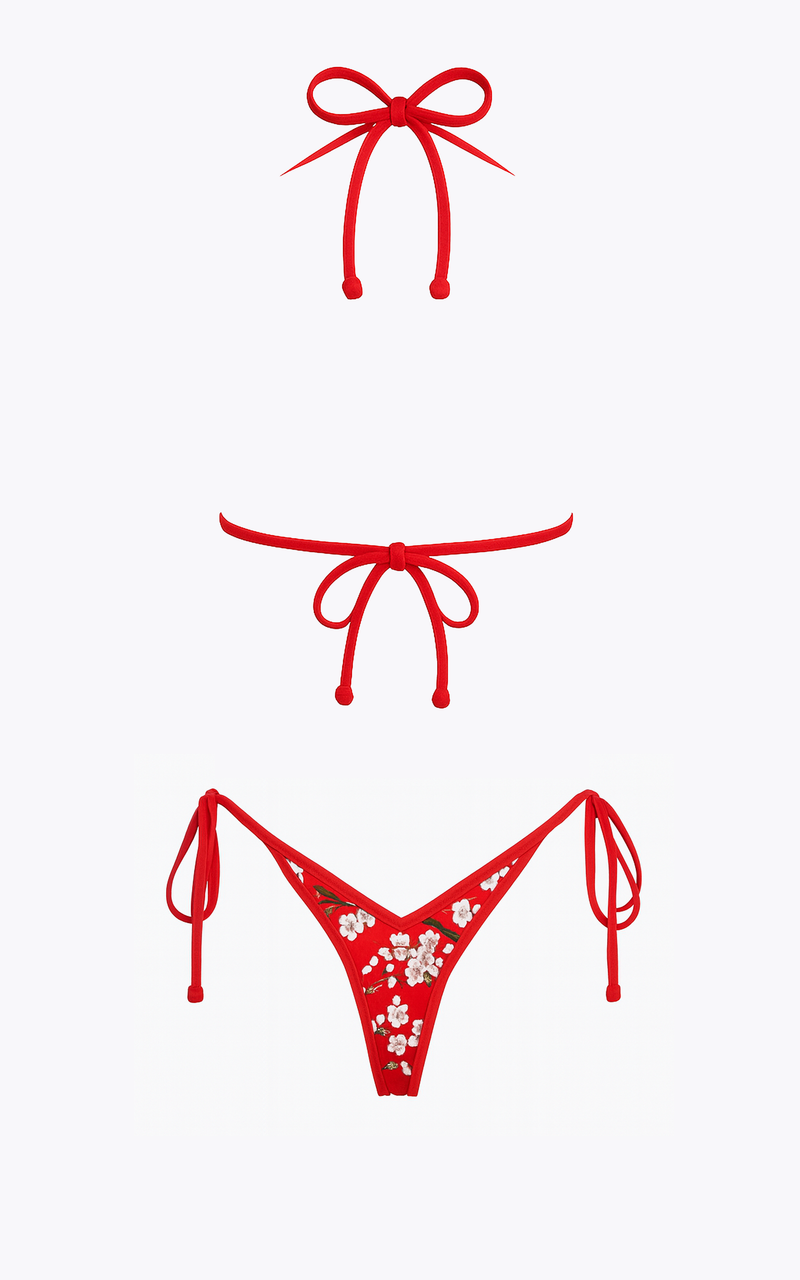 Vienna: V-Back Thong Bikini in Cherry Blossom