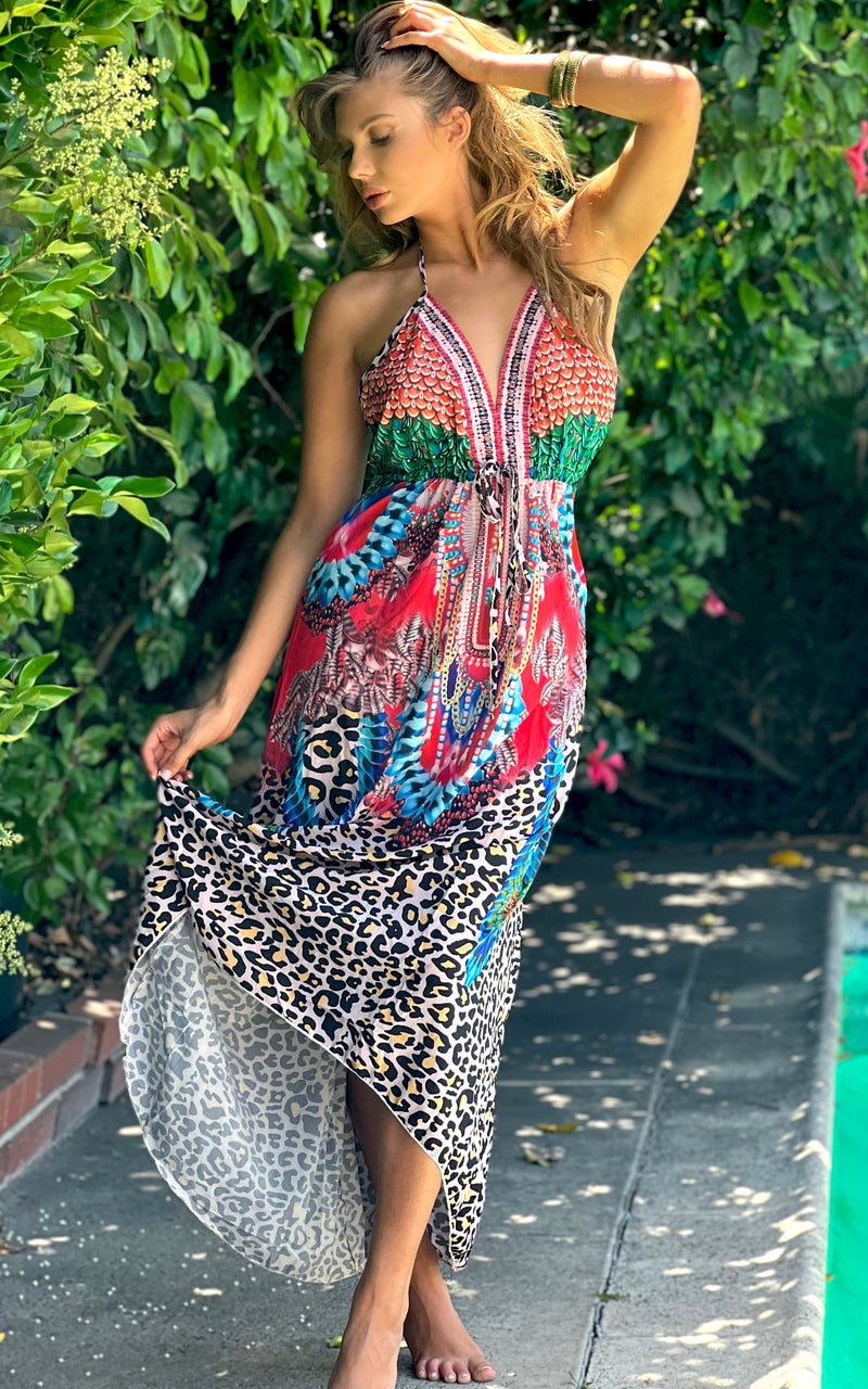 Nicole: V-Neck Maxi Dress in Mint Multiprint