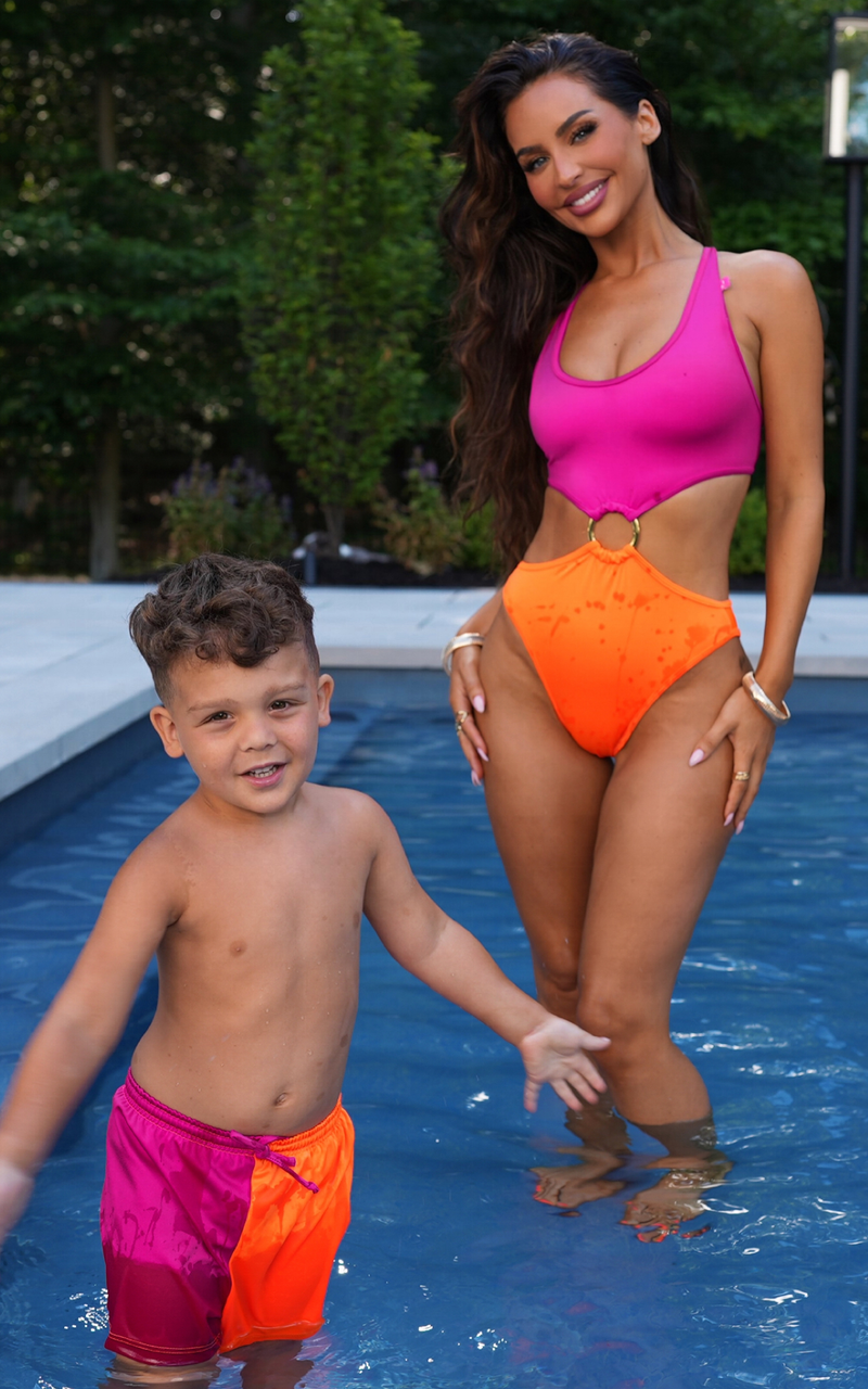 Renz: Boy's Shorts in Magenta x Neon Orange